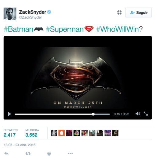A través de su cuenta de Twitter, el director de la cinta, Zack Snyder, presentó los nuevos emojis de “Batman V Superman”, los cuales se pueden utilizar de forma exclusiva en Twitter para PC, Mac y sus aplicaciones oficiales para móviles.