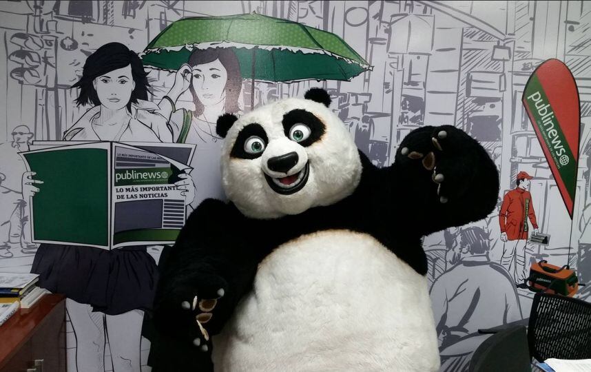 Po, el protagonista de la trilogía “Kung Fu Panda“, visitó las instalaciones de Publinews para promocionar la nueva película de la saga animada. “Kung Fu Panda 3” se estrenará en las salas del país el jueves 10 de marzo.