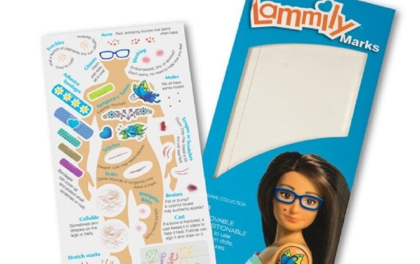 Al igual que Barbie, Lammily incluye unos stickers llamados “marcas Lammily”. Celulitis, estrías, acné, etc … nadie quiere hablar de ello porque la gente se avergüenza de tenerlo”, explica Lamm que quiere traer estos “defectos” normales en