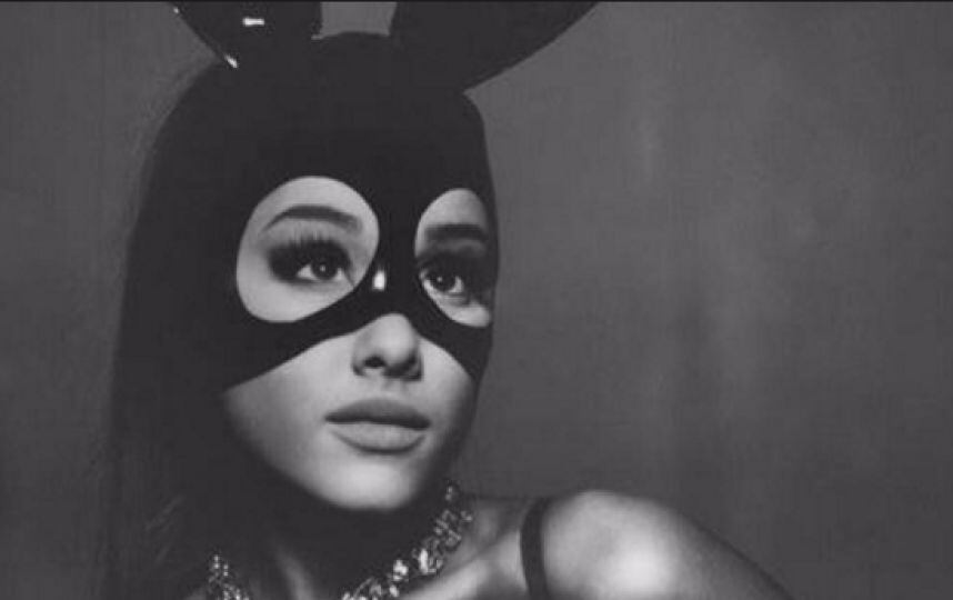 Grande compartió en sus redes sociales la portada de su reciente producción discográfica donde aparece con un antifaz de latex con orejas de conejo y el cabello suelto, ¡Ariana se ve muy sexy!
