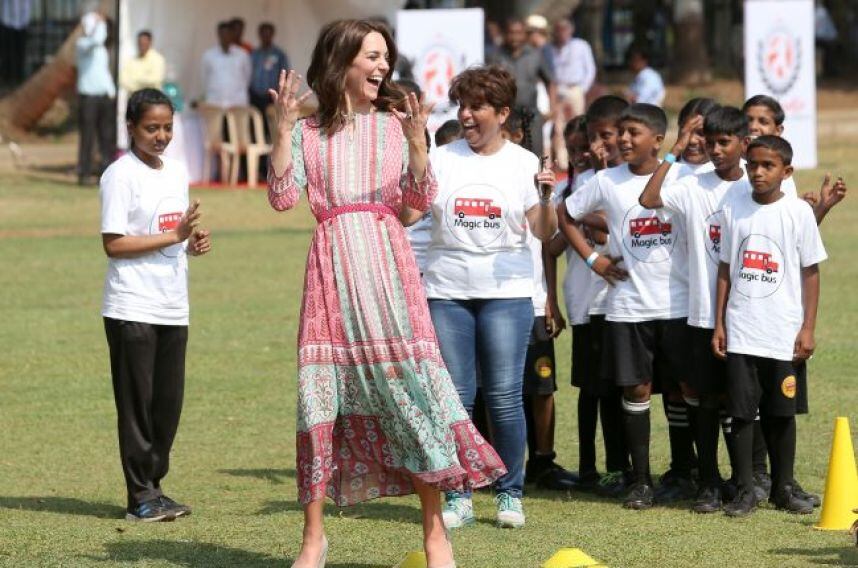 Middleton, que jugó cricket y un poco se futbol con niños y ejecutivos de tres ONGs, vistió un vestido sport casual de Anita Dongre, que ha maravillado a muchos internautas.