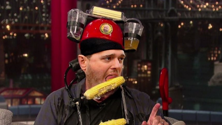 El cantante Michael Bublé sufrió un momento vergonzoso cuando se volvió viral la siguiente imagen, en la que él aparece comiendo maíz.