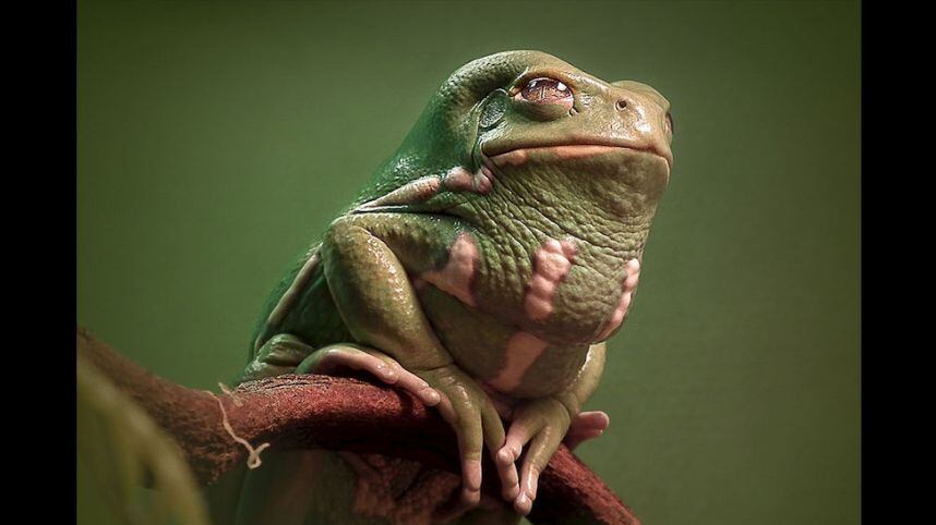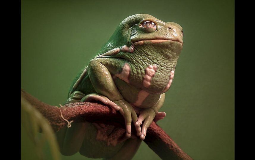 Las imágenes de esta cerosa rana mono de árbol, apodada como “El Jefe”, fueron tomadas por el fotógrafo Keith Talbot, en su casa de Ashington cerca de Newcastle. Pareciera que la rama sobre la que reposaba apenas podía soportar el peso de este anfibio obeso.