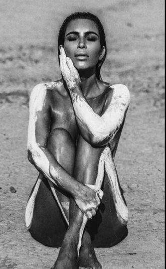 A seis meses de haber dado a luz a Saint, Kim vuelve a mostrar sus curvas, en la foto la vemos de espalda, en la imagen en blanco y negro resalta su cintura y su trasero.