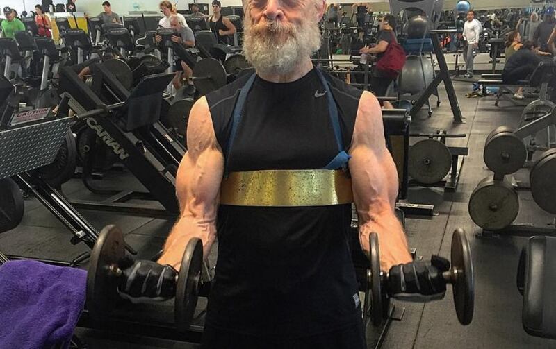 En las fotografías publicadas por la cuenta de Instagram de Aaron Williamson, se puede ver a Simmons, de 61 años, con barba tupida, levantando pesas y mostrando la marcada musculatura de sus brazos.
