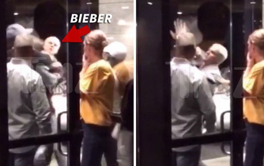 En la grabación podemos ver a Justin reclamar algo al hombre no identificado y luego lo empuja, recibiendo como respuesta un puñetazo. El canadiense responde, pero es derribado rápidamente por el hombre mucho más grande que él.