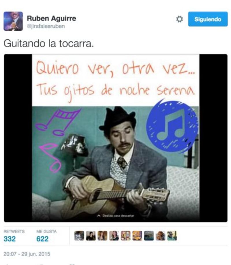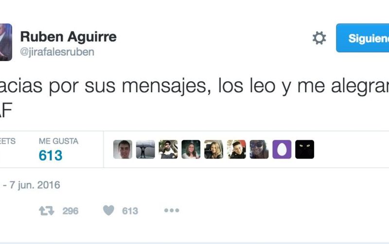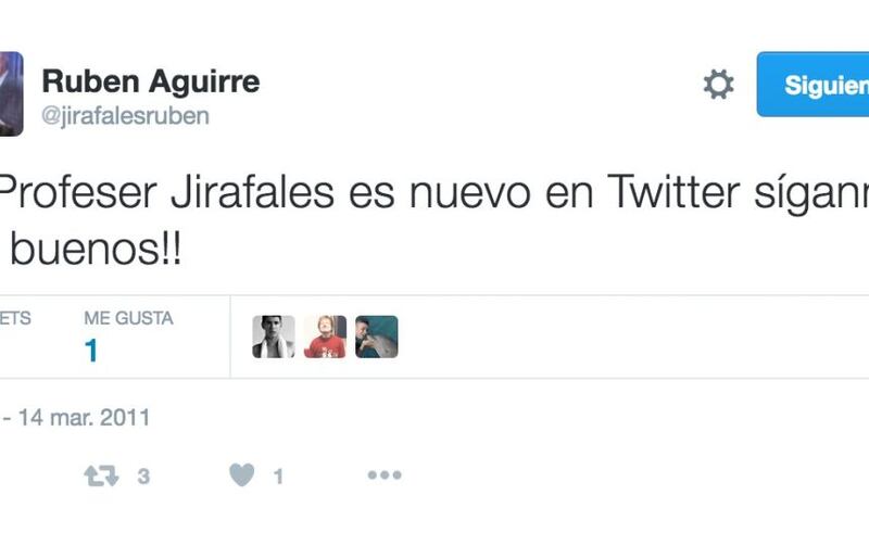 Rubén Aguirre publicó su primer tuit el 14 de marzo de 2011, con el mensaje “El Profesor Jirafales es nuevo en Twitter síganme los buenos!!”.