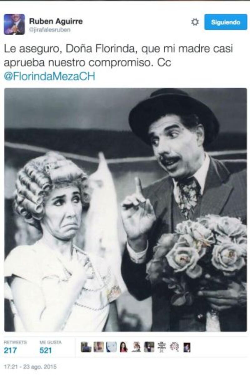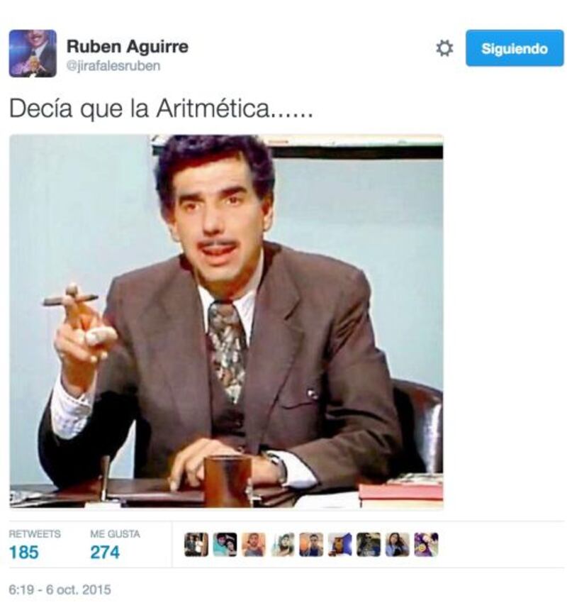 A través de Twitter, Rubén Aguirre interactuaba bastante con sus seguidores. Respondía sus preguntas, mandaba saludos e irrumpía en el timeline de sus “followers” con un: “Decía que la Aritmética”, tal como lo hacía en el salón de clases de “El chavo del ocho”.