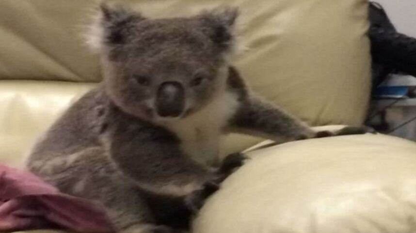 ¡Había un koala sentado en su sofá! Según las fotografías que Vicki compartió en Facebook, el animal luce bastante tranquilo. Sólo estaba sentado, mirando.