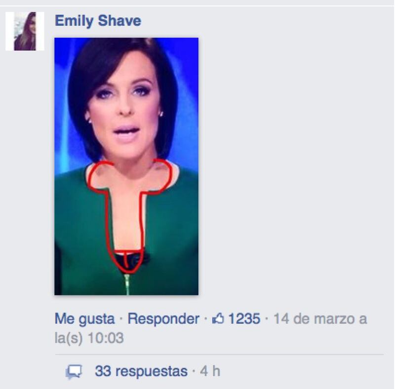 La presentadora de televisión australiana Natarsha Belling desató una ola de comentarios en las redes sociales, esto luego de que los televidentes encontraran que su escote tenía forma fálica.