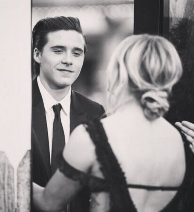 La joven pareja también compartió otro momento íntimo, en su cuenta de Instagram. Brooklyn publicó una foto donde él se ve de espalda, mientras carga a su amada. Ella lo abraza con los pies y la vemos de frente con el cabello alborotado. Junto a la foto el hijo de Victoria y David Beckham escribió: “Keeping her safe”.