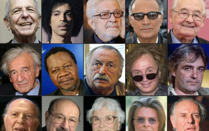 Entre otros fallecieron la escritora Harper Lee, el director de orquesta Pierre Boulez, los músicos Merle Haggard, Maurice White y Phife Dawg y los actores Gene Wilder, Abe Vigoda, Florence Henderson, Alan Rickman, Robert Vaughn, Garry Shandling, Doris Roberts, Fyvush Finkel y Anton Yelchin.