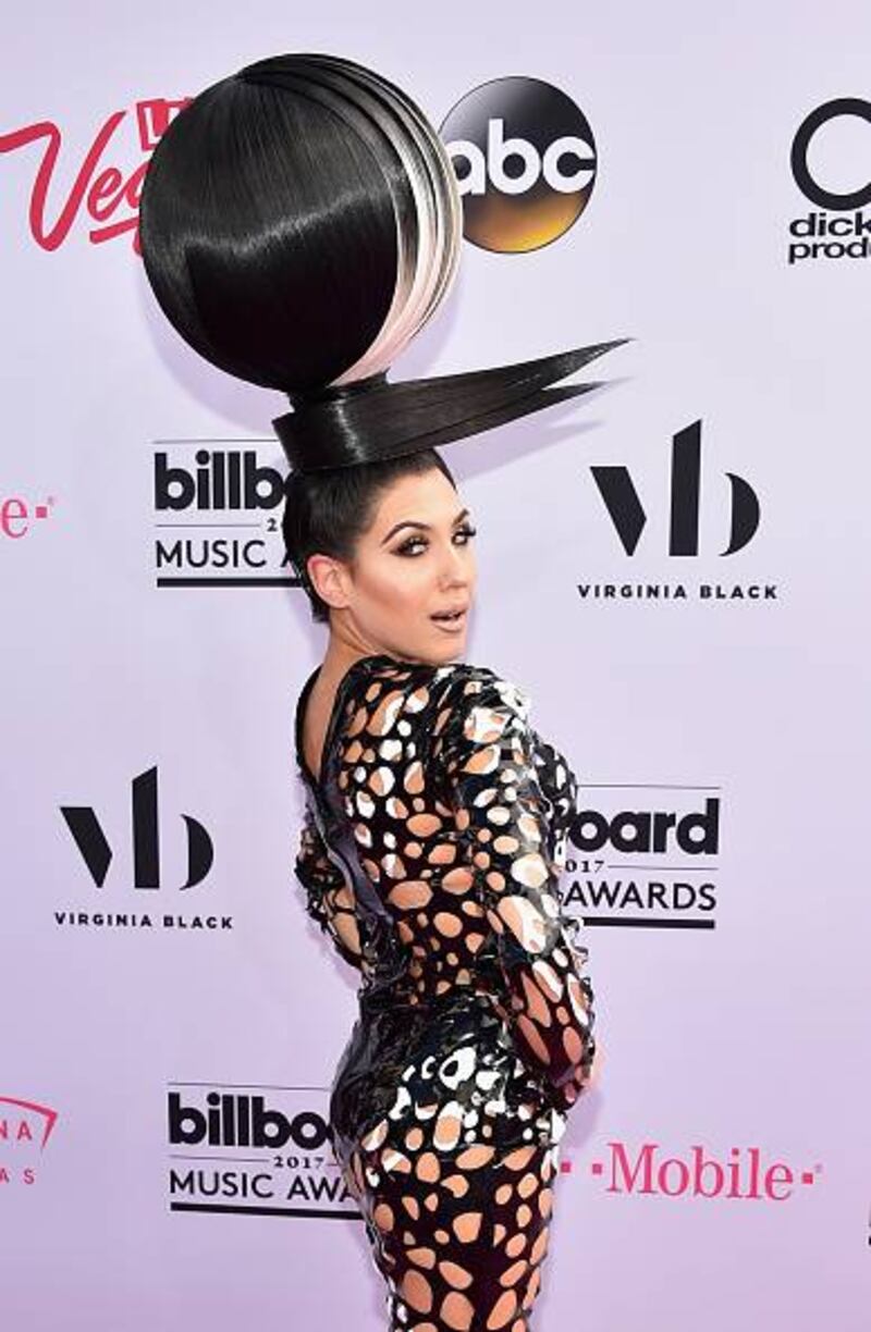 Y por si eso fuera poco, la estadounidense se colocó un peluquín a modo de sombrero que le añadía más excentricidad al look.
