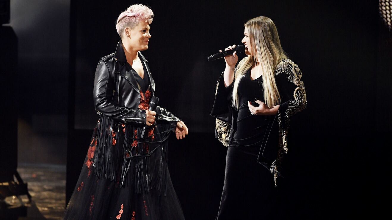 Pink fue la primera en subir al escenario cantando una espectacular versión de “Everybody Hurts”, de REM, mientras Clarkson se dirigió al escenario después del primer verso.