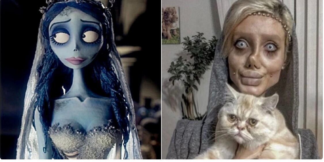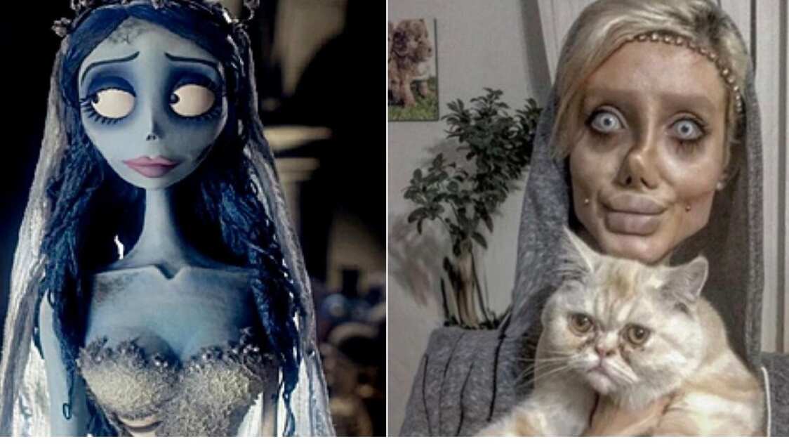 Se trata de Sahar Taabar, que pese a tener un bello rostro ha decidido invertir cuantiosas sumas de dinero para pagar las operaciones que le permitan verse lo más parecida a la expareja de Brad Pitt; sin embargo, el resultado no fue el esperado debido a que con maquillaje se parece más al famoso personaje de los clásicos de Tim Burton.