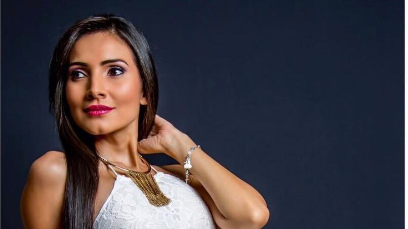 "Hoy celebrando la bendición de cumplir once años de matrimonio", escribió la dama conocida en Guatemala por ser la sexy presentadora del clima.