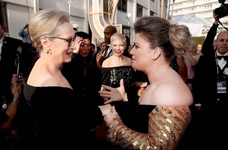 Kelly Clarkson demostró que es una mujer común que tiene a sus ídolos, pues no pudo mantener la compostura cuando vio Meryl Streep.