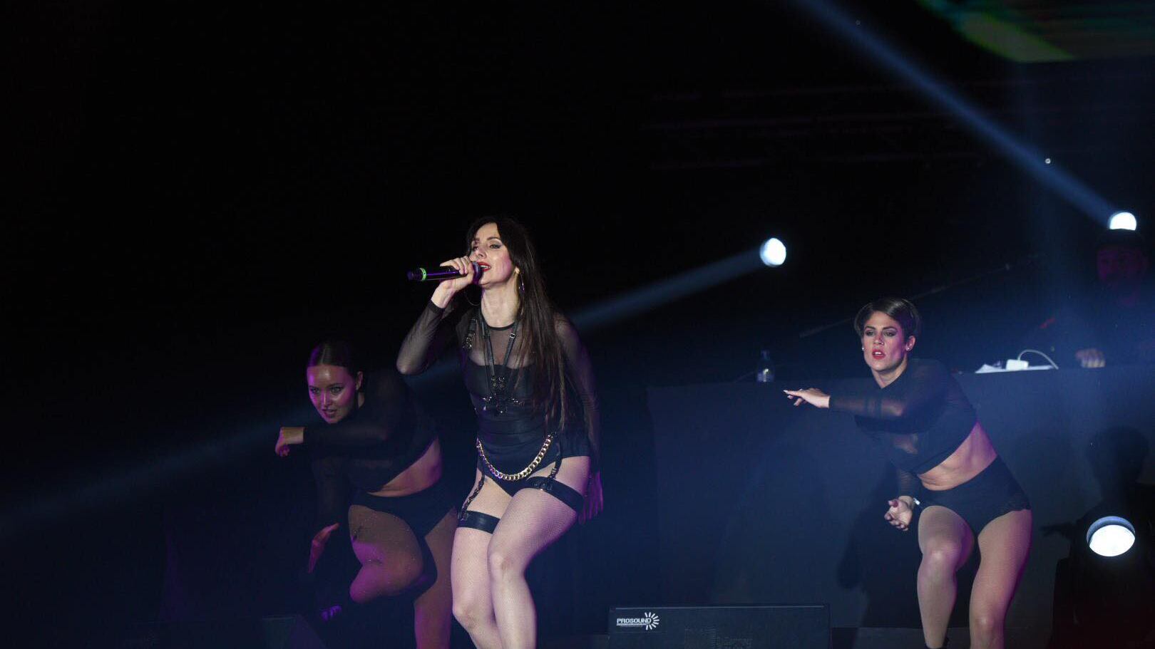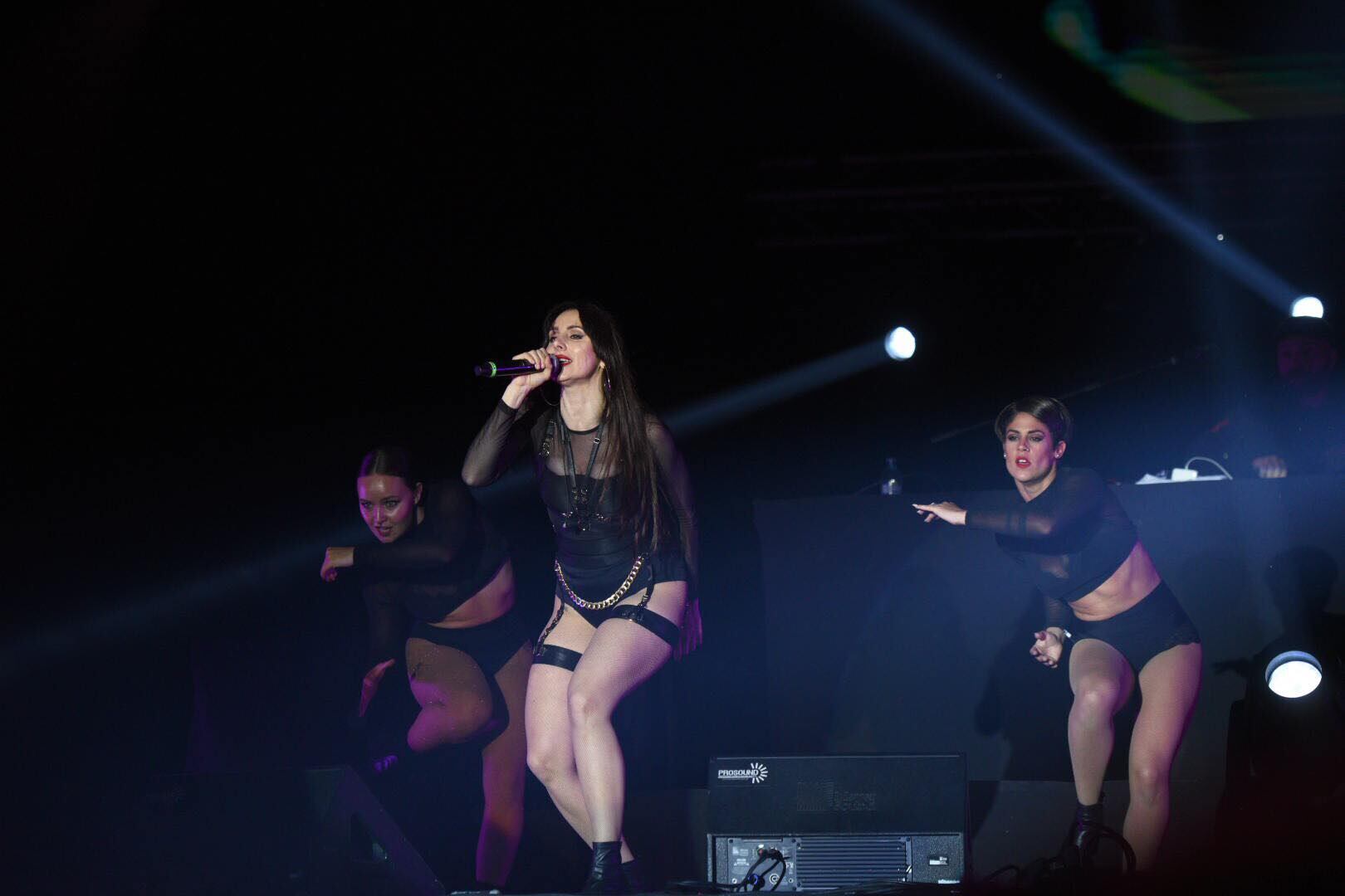 La popular artista conquistó al público con la interpretación de temas como: “Por la noche”, “La niña” y “No me pidas perdón”. Además, se robó cientos de miradas por su atrevido atuendo.