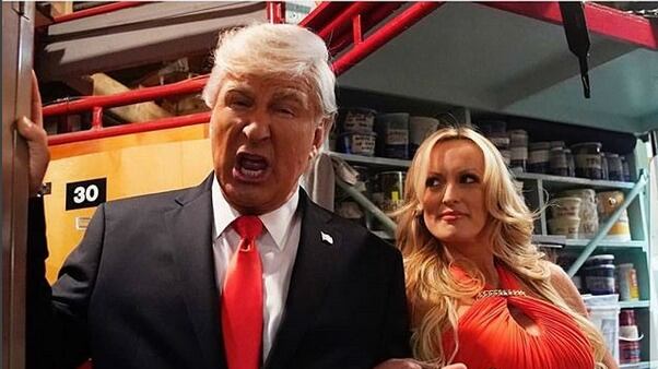 La actriz de cine para adultos Stormy Daniels pudo burlarse y enfrentar a un Donald Trump encarnado por el actor Alec Baldwin, en el programa "Saturday Night Live", donde le dijo que la única manera de terminar con el escándalo sobre su supuesto affaire es que renuncie.