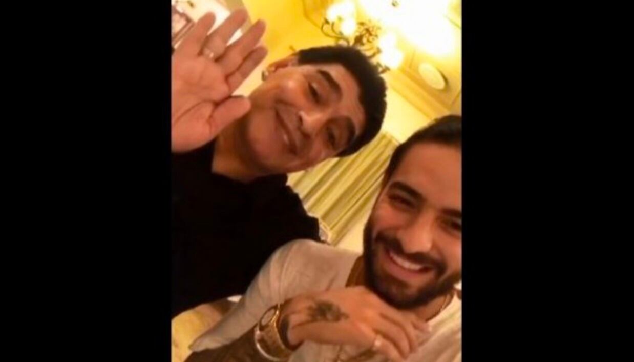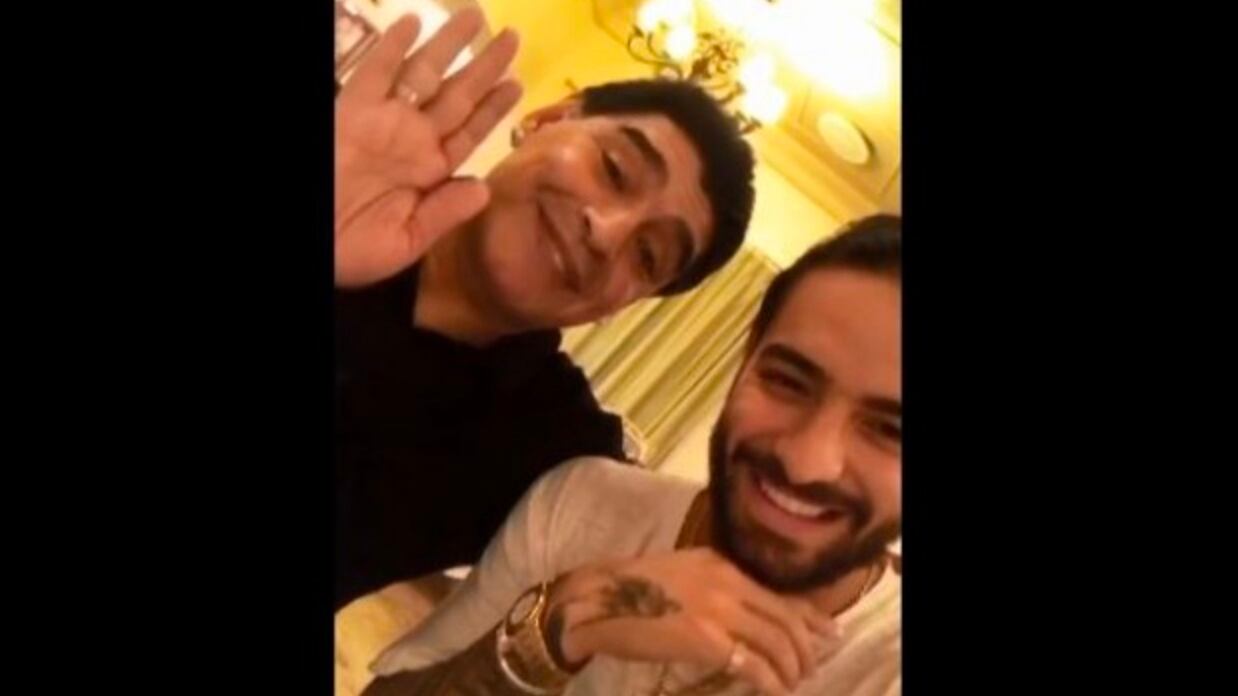“No sé si ustedes conozcan a este hombre, no sé si lo han visto antes”, dice Maluma en el video que publicó la tarde del sábado, antes de mostrar con su cámara a Maradona.