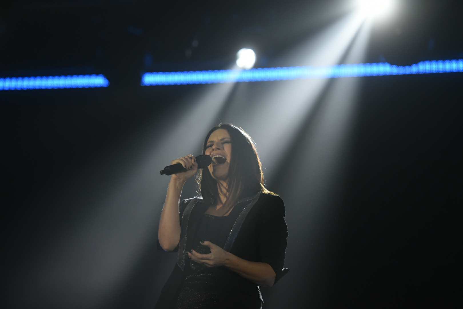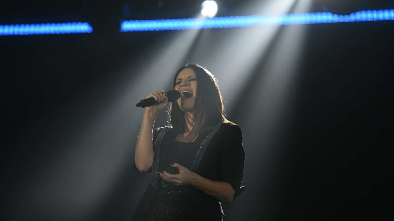 Acompañada de un selecto grupo de músicos, Pausini apareció en el escenario pasadas las 8 de la noche y se dejó arropar por el cariño que le demostró el público al corear cada una de sus canciones.