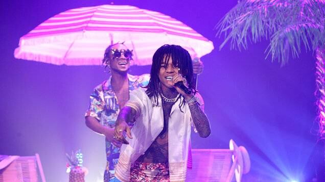 Junto a los hermanos Mississippi, Slim Jxmmi y Swae Lee encendieron a todos con su actuación al cubrir el piso del escenario con humo, luces nebulosas y accesorios para el escenario, incluyendo sillas de playa, sombrillas, palmeras y un bar.