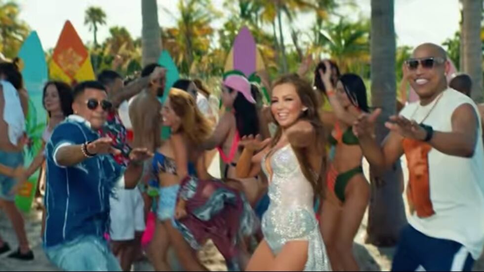 El video, filmado en Miami, presenta el romance entre una estrella y su guardaespaldas y es protagonizado por Thalía, quien luce un bikini metálico al estilo de la princesa Leia en “El regreso del Jedi”.