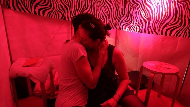 Mia, trabajadora sexual llegada del oeste de Francia, sale de la tienda con una sonrisa en los labios, Daniel Hellmann le hizo "una cariño y besos en el cuello" durante 10 minutos. Todo por 11 euros.