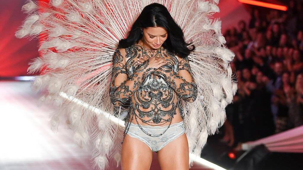 La supermodelo brasileña Adriana Lima hizo una reverencia con las manos sobre su corazón al realizar su 18ª y última pasarela anual de Victoria's Secret con unas alas con plumas de pavo real blanco que se movían suavemente mientras el público la ovacionaba.
