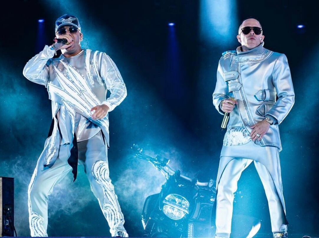 El actual espectáculo de los reguetoneros puertorriqueños incluye una producción espectacular. Les acompañan diez músicos y ocho bailarines.