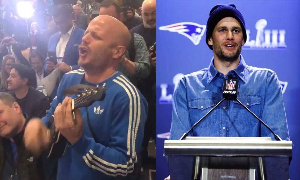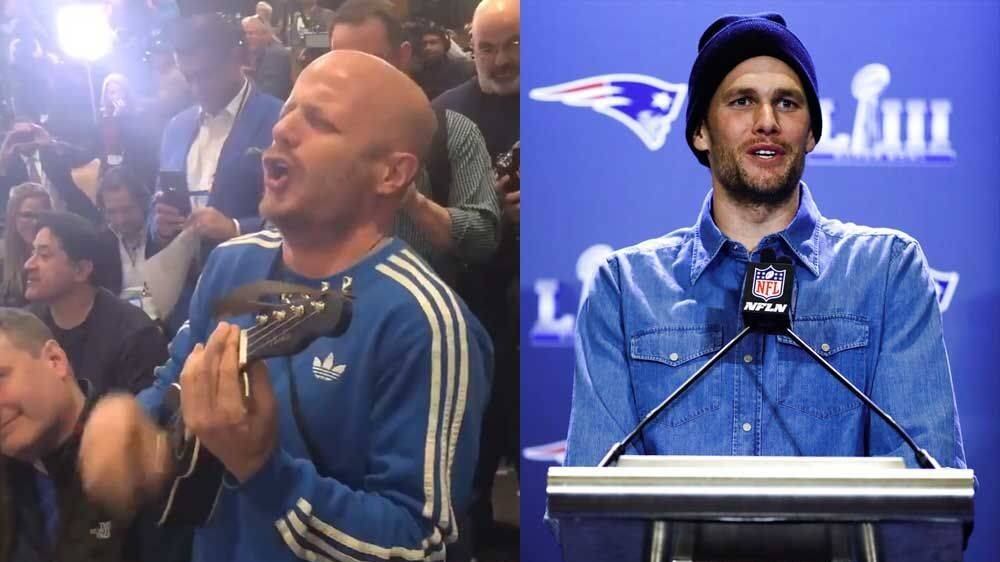 Previo al Super Bowl LIII, Tom Brady se presentó ante los medios de comunicación y en plena conferencia de prensa, Facundo le llevó una sorpresa.