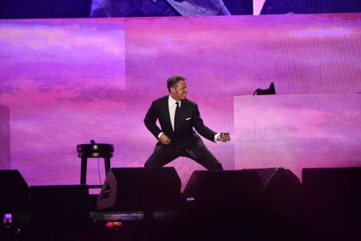 Enfundado en su característico traje negro, Luis Miguel apareció sobre el escenario pasadas las 9 de la noche, provocando todo tipo de emociones entre los asistentes. Con un saludo muy corto, el mexicano se refirió a su público para luego seguir con su actuación.