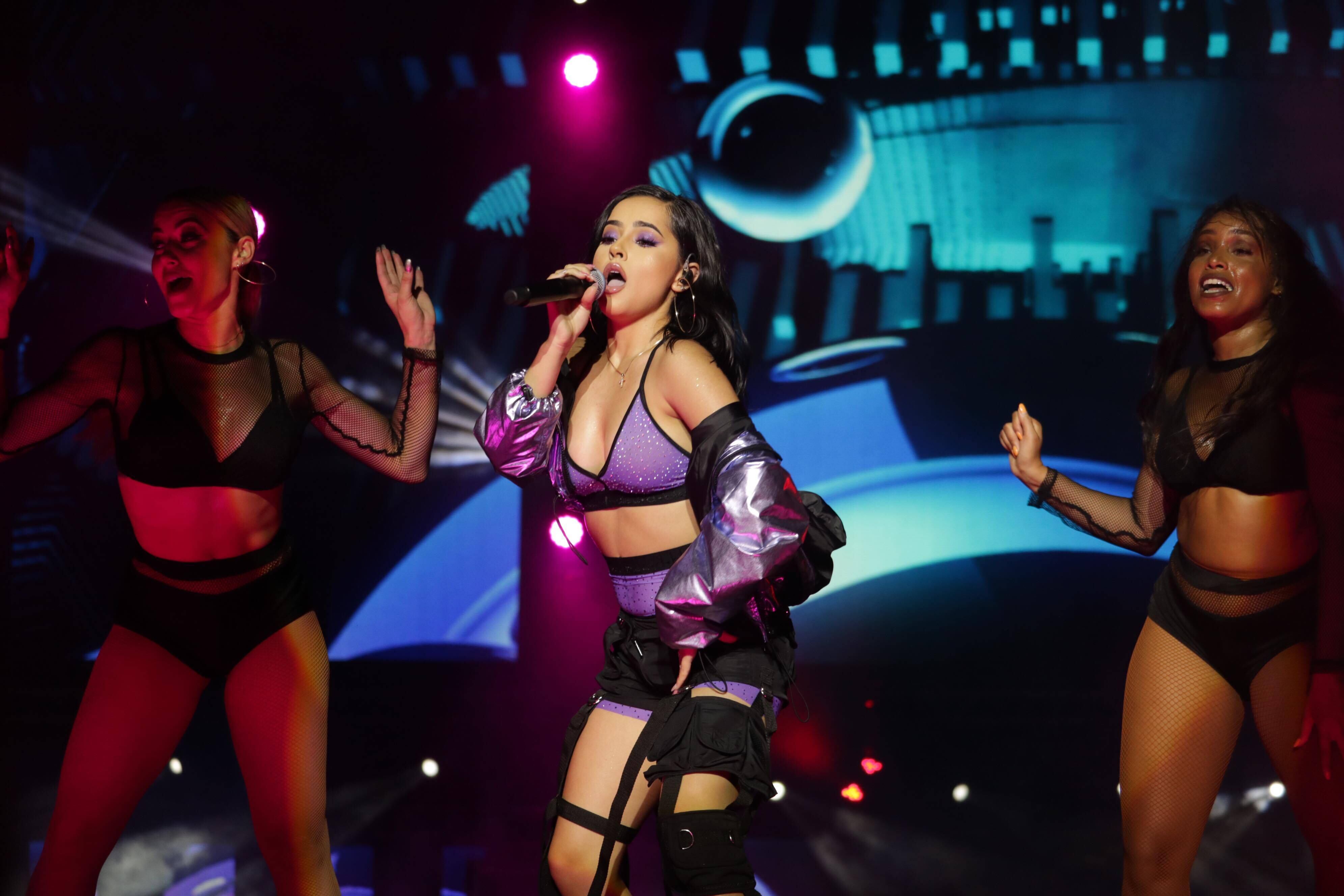 La sensualidad de Becky G se hizo presente desde que subió al escenario y dejó claro por qué es considerada una de las máximas exponentes del género urbano en la actualidad, además de una de las más bellas y atractivas. La cantante puso a todos a bailar y presumió su tonificada figura en un sensual atuendo que acaparó las miradas.