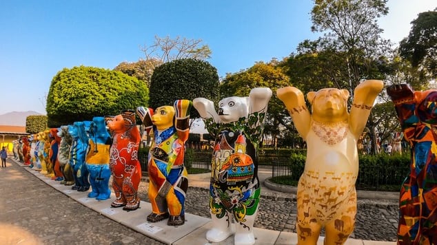La famosa exposición de 144 osos gigantes y su primera parada fue en La Antigua Guatemala.
