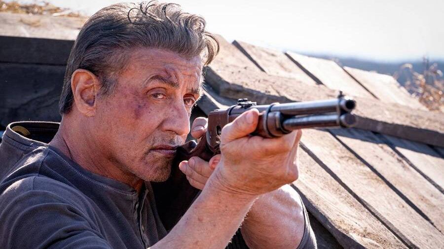 El personaje de Stallone aparece en varias escenas con todo tipo de armas, incluyendo el emblemático cuchillo militar que lo acompaña desde inicios de la saga.