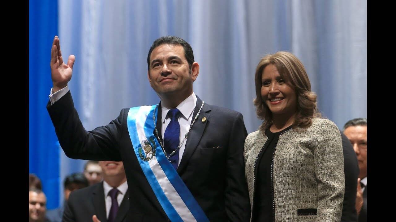 En una fotografía publicada en la cuenta del Gobierno de Guatemala (@GuatemalaGob) se observa a él con una espesa barba como se le ha visto en los últimos días en actividades públicas; además, porta un traje de color negro que lo combina con un chaleco de ceremonia, de color crema, con cierre simétrico de botones color negro.