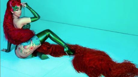 ¡Impresionante!, así lo han tachado varios de sus fanáticos. Pues el disfraz de Cardi B es muy elegante, empezando por su peluca peliroja extremadamente larga. La rapera decidió parecerse a la villana Hiedra Venenosa. La pose de frente deja muy destapada su parte íntima.