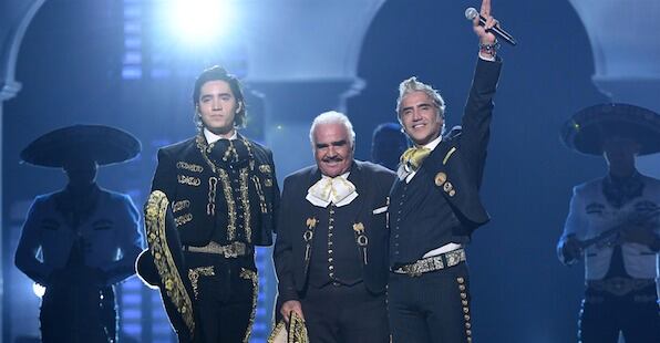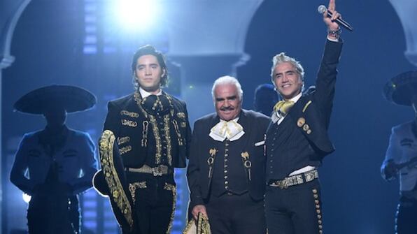 Enfundado en su tradicional traje de charro, el intérprete cantó algunos de sus temas, dentro de las que destacó “Volver, volver”. Esta es la primera vez que la dinastía Fernández se presentan juntos en un escenario.