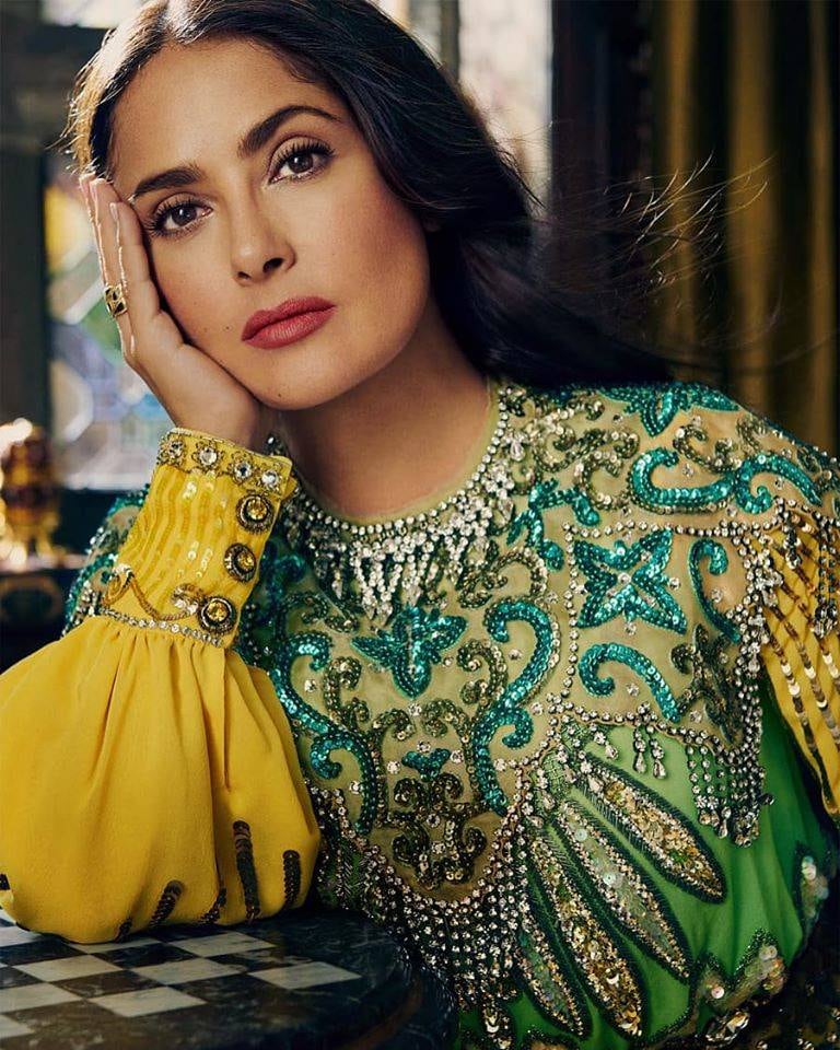 La estrella mexicana se dio tiempo de bromear con sus seguidores acerca de esa sesión y escribió: "Qué bueno que nadie me hizo cosquillas porque mis manos eran parte del vestuario". Salma no ofreció más detalles de las fotografías, como el año en que fueron tomadas, si fueron hechas para alguna campaña o estuvieron destinadas a alguna revista.