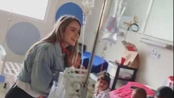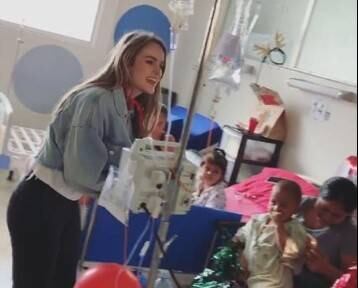 En las imágenes que compartieron en las redes sociales, se puede ver a Stephanie repartiendo sonrisas y abrazos entre los enfermitos. Lo anterior, mientras Robleto alegra el momento con un villancico.