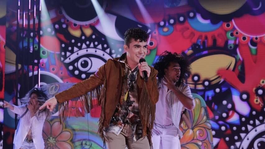 El guatemalteco se presentó con una escenografía y vestuarios adaptados con la década de los 1970 y la psicodelia. Un hippie, en concreto.