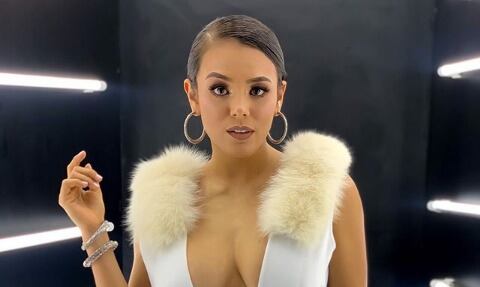 En la imagen, la joven aparece enfundada en un diminuto y ajustado vestido, el cual deja expuestos parte de sus atributos.