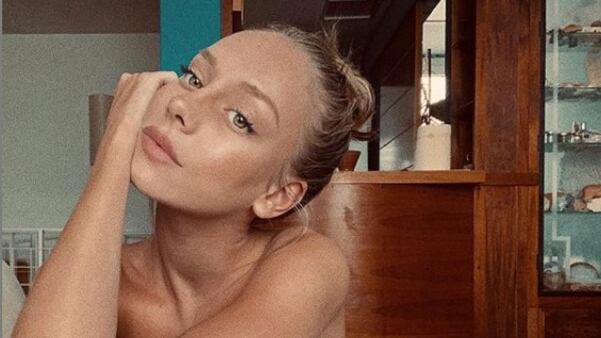 En la foto se aprecia la figura de la joven sin sostén, presumiendo uno de sus tatuajes: Una Luna.