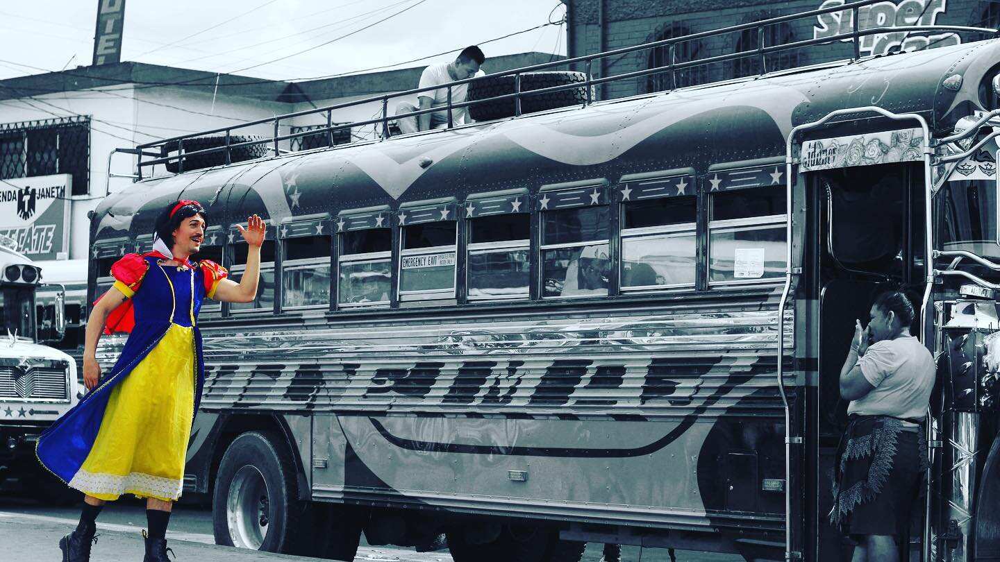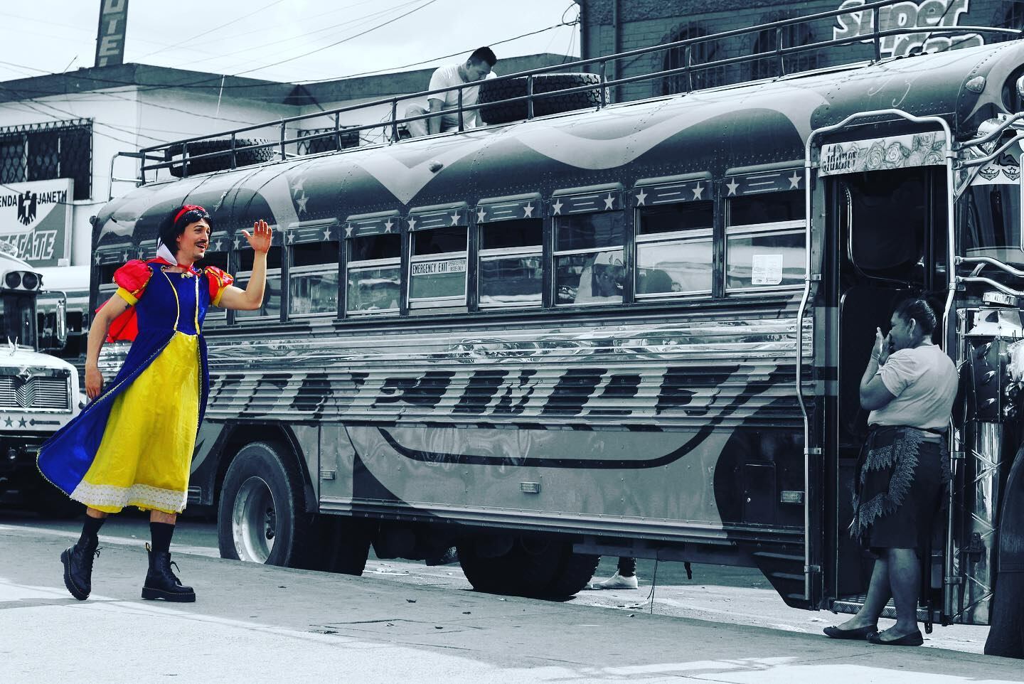 La colorida “princesa” se ve en varios ambientes del cotidiano guatemalteco. Está de compras en un mercado y por abordar un bus.