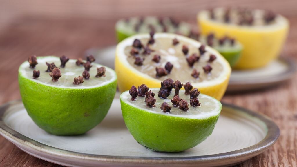 Coloque clavos de olor en la mitad de un limón y coloquelos en diferentes puntos de la casa, como en las ventanas. Esto ahuyentará a los mosquitos y moscas.