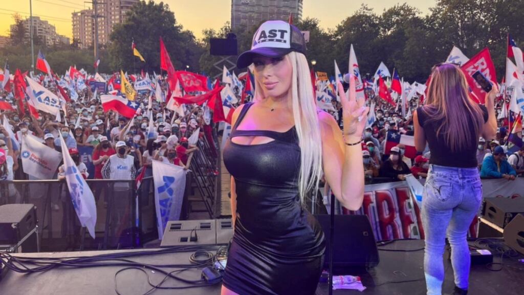 Ahora y en el cierre de campaña de Kast, la modelo e influencer llegó con un provocativo vestido donde deslumbró sus sensuales atributos.