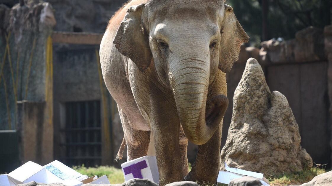 Además, Trompita también recibió un reconocimiento. El Zoológico La Aurora brindó a la elefanta un regalo compuesto de maní, sandía y zanahoria.