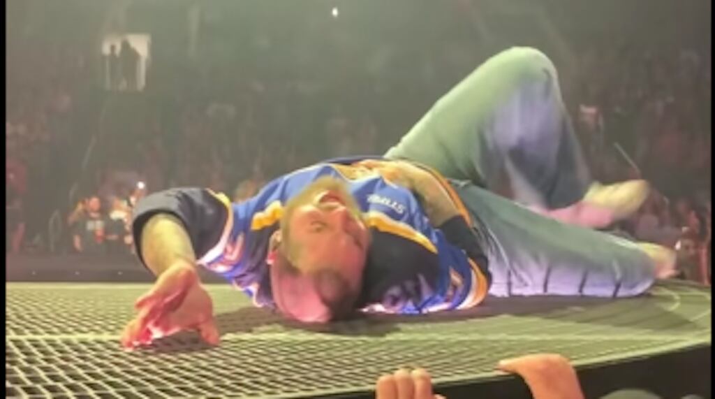 El cantante estadounidense Post Malone terminó tendido sobre el escenario mientras realizaba una presentación en el Enterprise Center en St. Louis, Misuri.