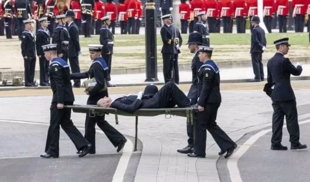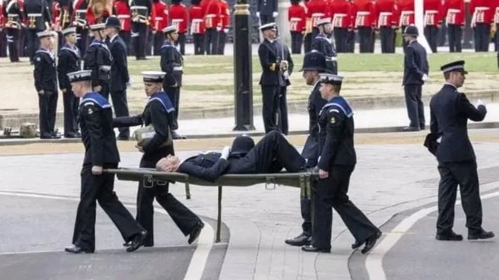 El momento fue captado por medios internacionales, en las imágenes se observa cuando el policía es retirado del lugar en una camilla para ser atendido por personal de salud. La Real Policía Montada de Canadá encabezó la marcha del cortejo al término del funeral, de camino hacia el arco de Wellington, donde los restos de la Reina se transfirieron a un coche fúnebre para llevarla a Windsor.
