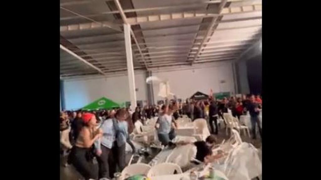 En las imágenes que circulan en redes sociales, se ve a un grupo de jóvenes que se enfrentan en una fuerte pelea que incluye hasta golpes con sillas. Es evidente el estado de ebriedad entre los causantes de la riña mientras otras personas intentan calmar los ánimos.